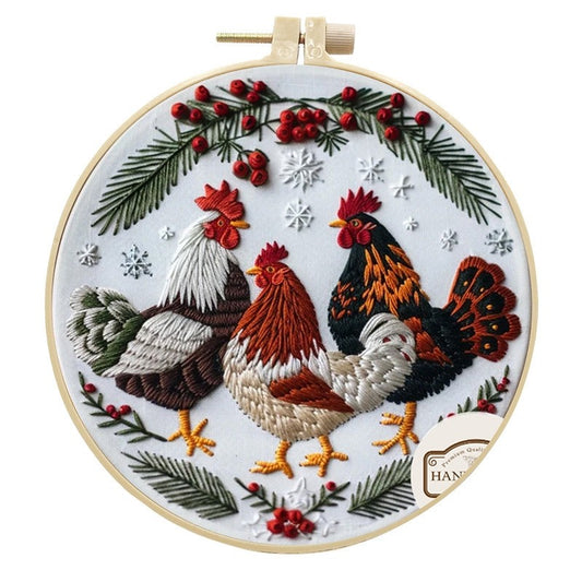 Christmas Roosters Embroidery Kit