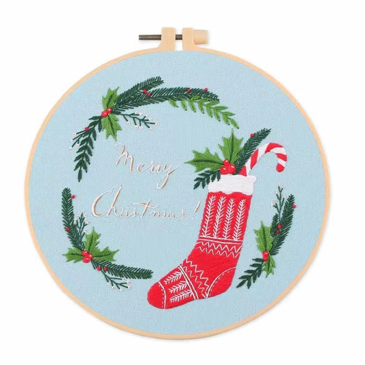 Christmas Wreath Hand Embroidery Kit for Beginners